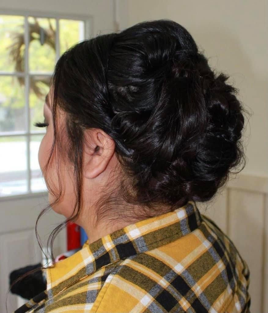 This project showcases a variety of elegant updo hairstyles, including intricate braids, curls, and decorative hair accessories. The images feature different hair colors and floral accents, perfect for brides and special occasions.